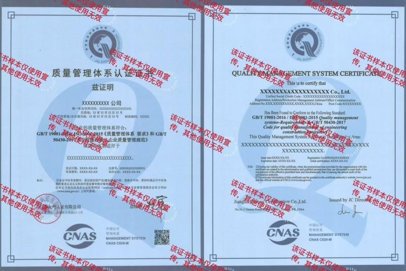 • 質(zhì)量管理體系50430證書(shū)樣本